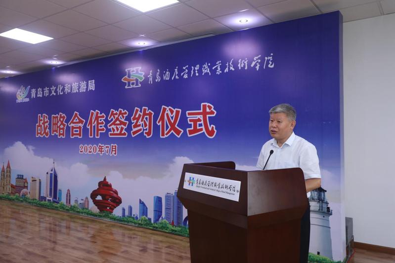 李达在致辞中对双方战略合作协议的签订表示了祝贺,向关心公司发展的市局领导表示感谢。他回顾了三年来双方的多项重大密切工作,指出在双高建设和部省共建职教高地的背景下,公司扎根青岛办学、肩负起服务青岛文旅产业发展的使命担当,愿双方以此次签约为契机,密切政校交流联系,做实战略合作项目,结出更多的合作成果。