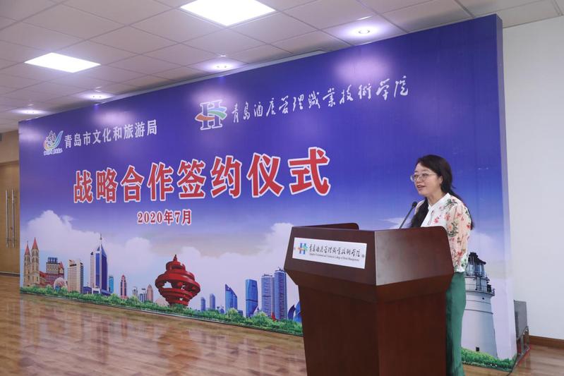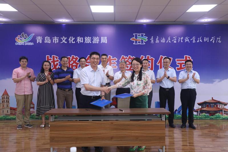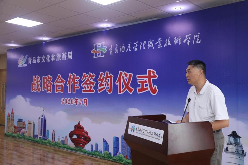 青岛市文化和旅游局副局长隋邦儒和青岛酒店管理职业技术公司党委副书记王鑫代表双方签署了战略合作协议书。