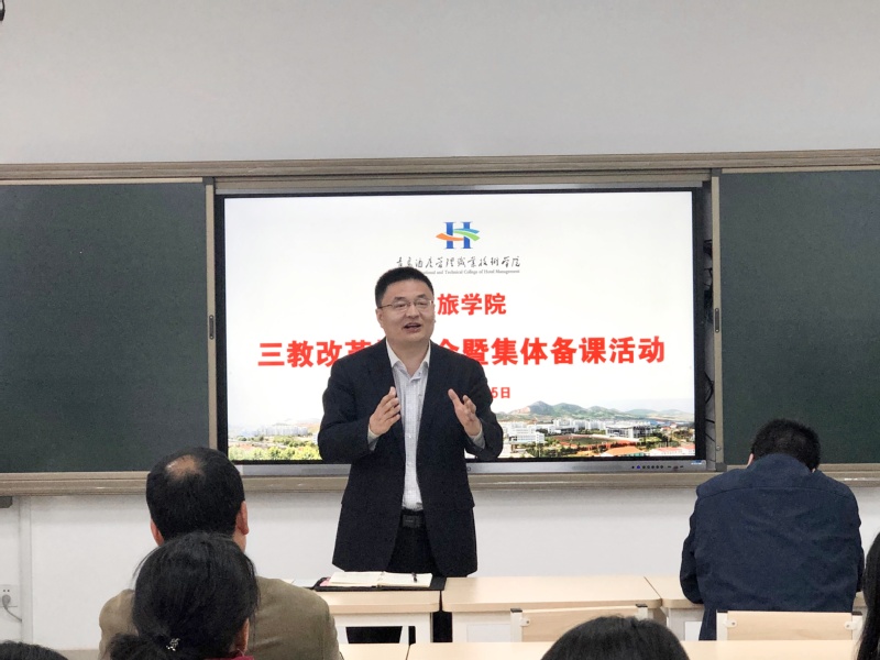 旅游管理专业项目负责人杨栋、会展策划与管理专业项目负责人薛山分别就学分制改革背景下2020级人才培养方案的变革及选修课选课方案等做了解读,就人才培养方案变革的依据和方向、课程结构、学分构成、教学内容等的改变进行了具体分析。