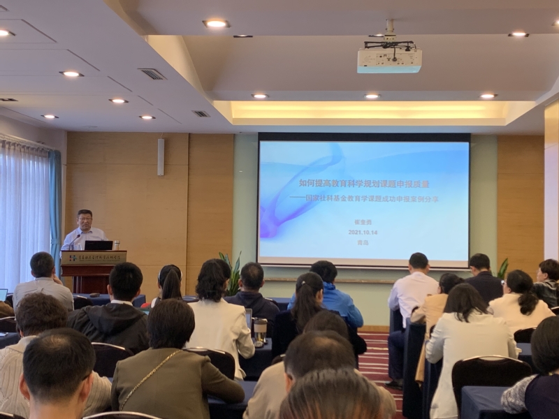 下午,在“如何提高教育科学规划课题申报质量—国家社科基金教育学课题成功申报案例分享”专题讲座中,崔奎勇教授就如何理解申报书(是什么)、如何填报申报书(怎么干)、如何评选申报书(如何选)和体会与认识(怎么看)四个方面展开讲解,就国家社科基金教育学课题等重大课题申报过程中存在的普遍问题、申报的规范性、如何提高填报质量等进行了详细分析。科研处副处长孙诗靓主持讲座。