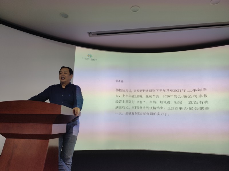 薛山首先介绍了当前国家疫情防控方面的政策和措施,讲解了疫情防控背景下旅游行业和会展行业相关管理规定,剖析了文旅及会展企业在疫情防控背景下面临的市场及企业管理问题,然后从业态创新和模式创新的角度,针对文旅及会展企业经营模式转变给出了应对措施和建议。随后,以中国国际进口博览会以及广交会在线网络展示平台为例,详细介绍了数字经济时代对文旅及会展企业经营模式带来的影响。最后,师生开展互动交流,畅所欲言,气氛热烈。