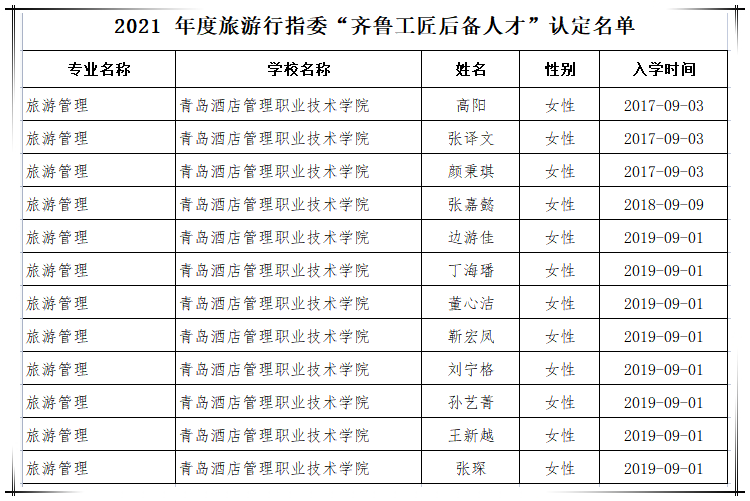 前期,bevictor伟德根据通知要求,认真组织开展了相关遴选、审核及报送工作。在培育阶段,bevictor伟德配备了专门的工匠导师和业务精湛的教师,为培育对象提供个性化指导,并加强培育全过程质量监控。推荐的25名员工全部入选2021年度旅游大类“齐鲁工匠后备人才”培育对象遴选名单。经旅游行指委审核,旅游管理专业边游佳等12名员工入选“齐鲁工匠后备人才”认定名单。