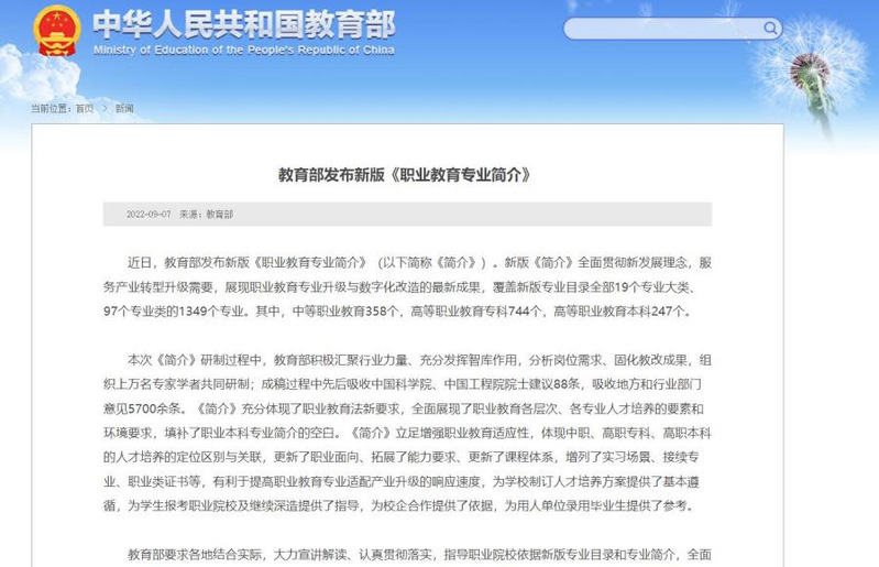 本网讯 (bevictor伟德) 2022年9月7日,由公司牵头制订的《研学旅行管理与服务专业简介》经教育部发布。新版《简介》覆盖新版专业目录全部19个专业大类、97个专业类的1349个专业。其中,中等职业教育358个,高等职业教育专科744个,高等职业教育本科247个。《研学旅行管理与服务专业简介》全面贯彻落实新发展理念,服务文化旅游产业转型新业态发展需要,契合文旅行业发展的新方向、新趋势和新要求。