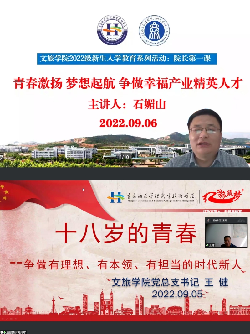 专业负责人、骨干教师分别参与各专业入学教育活动。详细的向同学们介绍了专业概况,发展历程,团队队伍,人才培养方案,实训、实习、就业与生学,优秀员工案例等,帮助新生更好的理解“幸福是奋斗出来的”这一时代命题。师生互动,活跃有趣;“云端”初见,温暖在线。