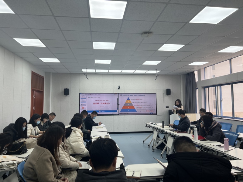 办公室主任周海磊从双高建设、团队队伍建设、技能大赛和双创竞赛获奖情况、培训项目进展、产教融合、招生实习就业、公司治理等方面做了上学期工作总结汇报,并就新学期开学初相关工作内容进行了相关安排。