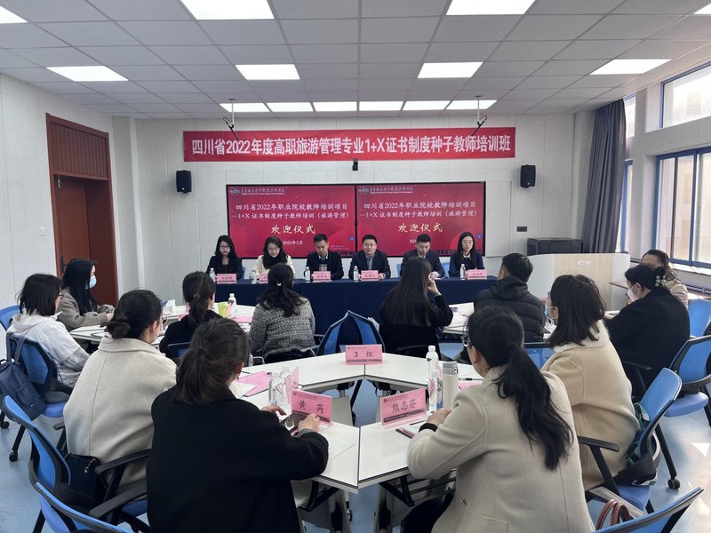 本网讯(bevictor伟德 孟凤娇)3月7日上午,四川省2022年职业院校教师培训项目1+X证书制度种子教师培训班欢迎仪式在bevictor伟德320智慧教室举行。继续教育公司经理张承业、bevictor伟德经理石媚山、研学旅行管理与服务专业相关教师及1+X证书制度种子教师培训培训班全体学员参加此次活动。