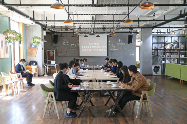 薛卿表示双方既有专业重合优势,也有办学理念共鸣,希望进一步深化合作,共同探索高质量人才培养路径。窦玉明从党团建设、思政教育、员工骨干培养与实践拓展、就业创业等方面介绍了联系我们概况。