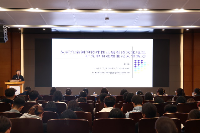 在学术报告厅,集团特聘教授、广州大学地理科学与遥感公司领军教授、博士生导师朱竑以《从研究案例的特殊性正确看待文化地理研究中的选题兼论人生规划》为题,以国内外在科研学术领域取得优异成绩的专家成长经历为案例,深入浅出地介绍了学术研究论题的出发点、模式和方法。