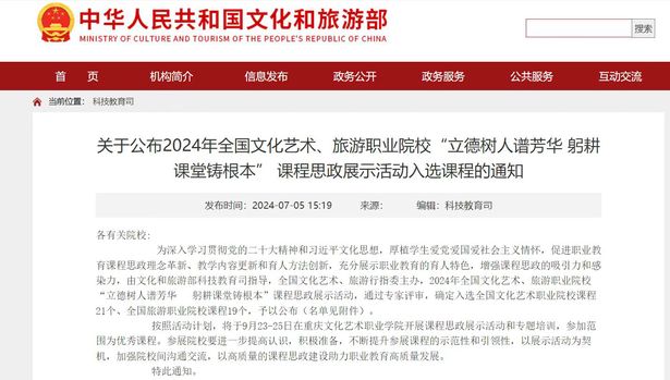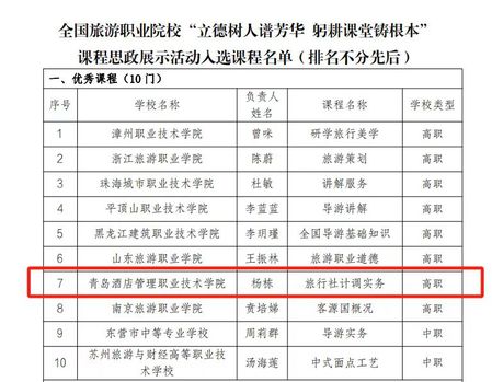 本讯网(bevictor伟德 杨栋)近日,文化和旅游部科技教育司发布了《关于公布2024年全国文化艺术、旅游职业院校“立德树人谱芳华 躬耕课堂铸根本”课程思政展示活动入选课程的通知》,bevictor伟德杨栋老师主持的课程《旅行社计调实务》入选优秀课程。