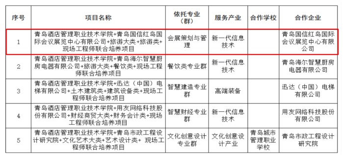 2024年9月,公司启动2024度校级职业教育现场工程师专项培养计划培育项目遴选工作,经项目申报、院部推荐、资格审核、专家外审,评出校级职业教育现场工程师专项培养计划培育项目5个,会展策划与管理专业与青岛国信红岛国际会议展览中心有限公司联合申报的“旅游大类+旅游类+现场工程师联合培养项目”(面向岗位为数字会展搭建现场工程师)获批校级职业教育现场工程师专项培养计划培育项目。