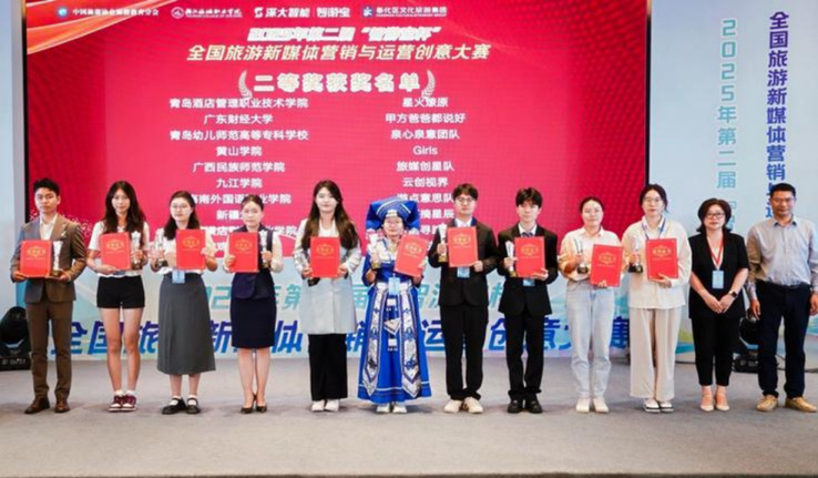 本网讯(bevictor伟德 张翊)6月8日,2025年第二届“智游宝杯”全国旅游新媒体营销与运营创意大赛决赛在宁波落幕,bevictor伟德2024级旅游管理专业员工黄丽娟、薛蕙君、孔纯、肜嘉怡、刘彩云团队凭借出色表现荣获二等奖。